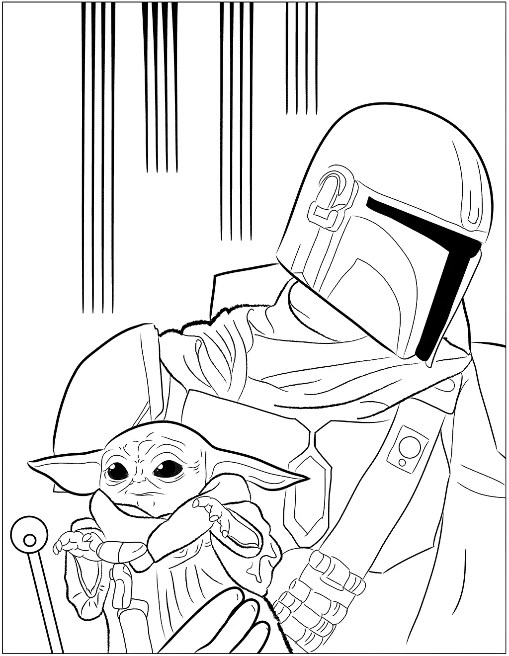 Pagina da colorare mandaloriana e grogu