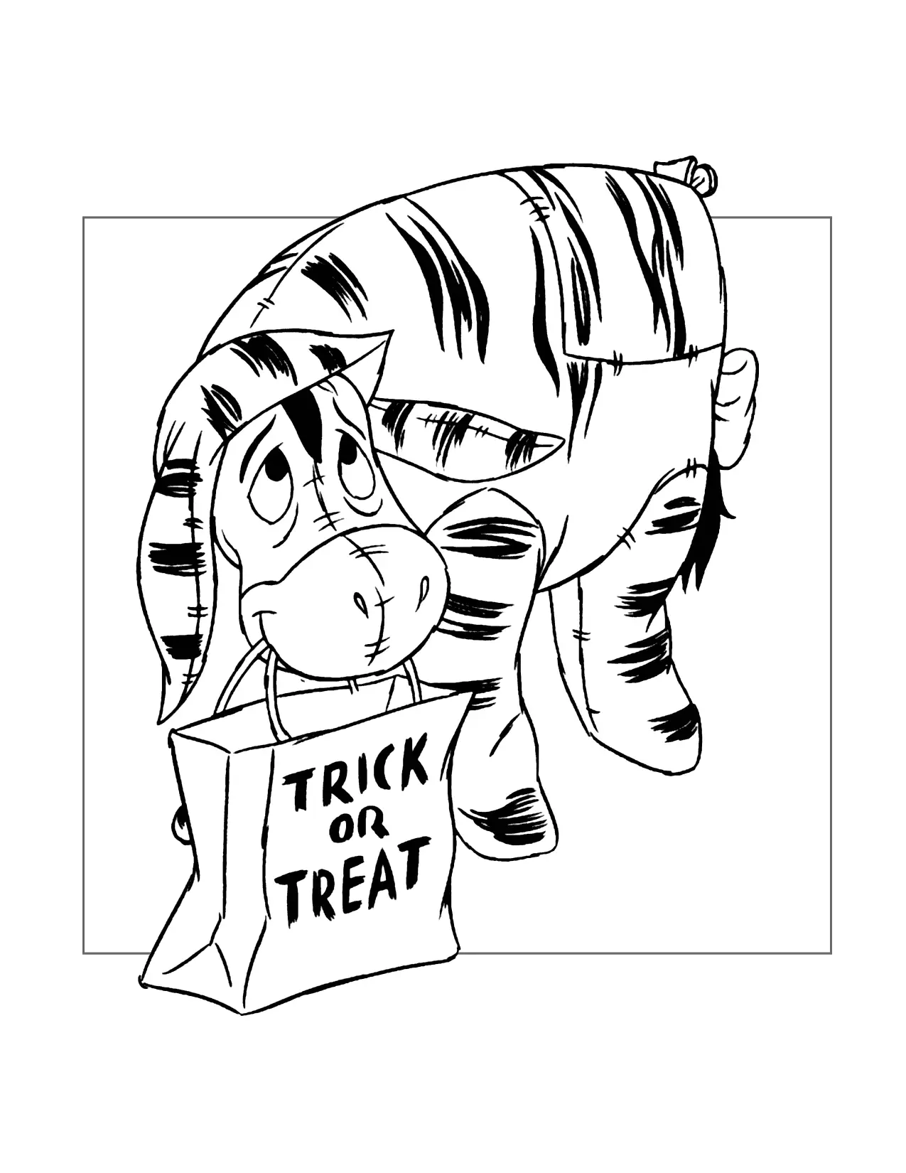 Eeyore in costume Tigger per la pagina da colorare di Halloween