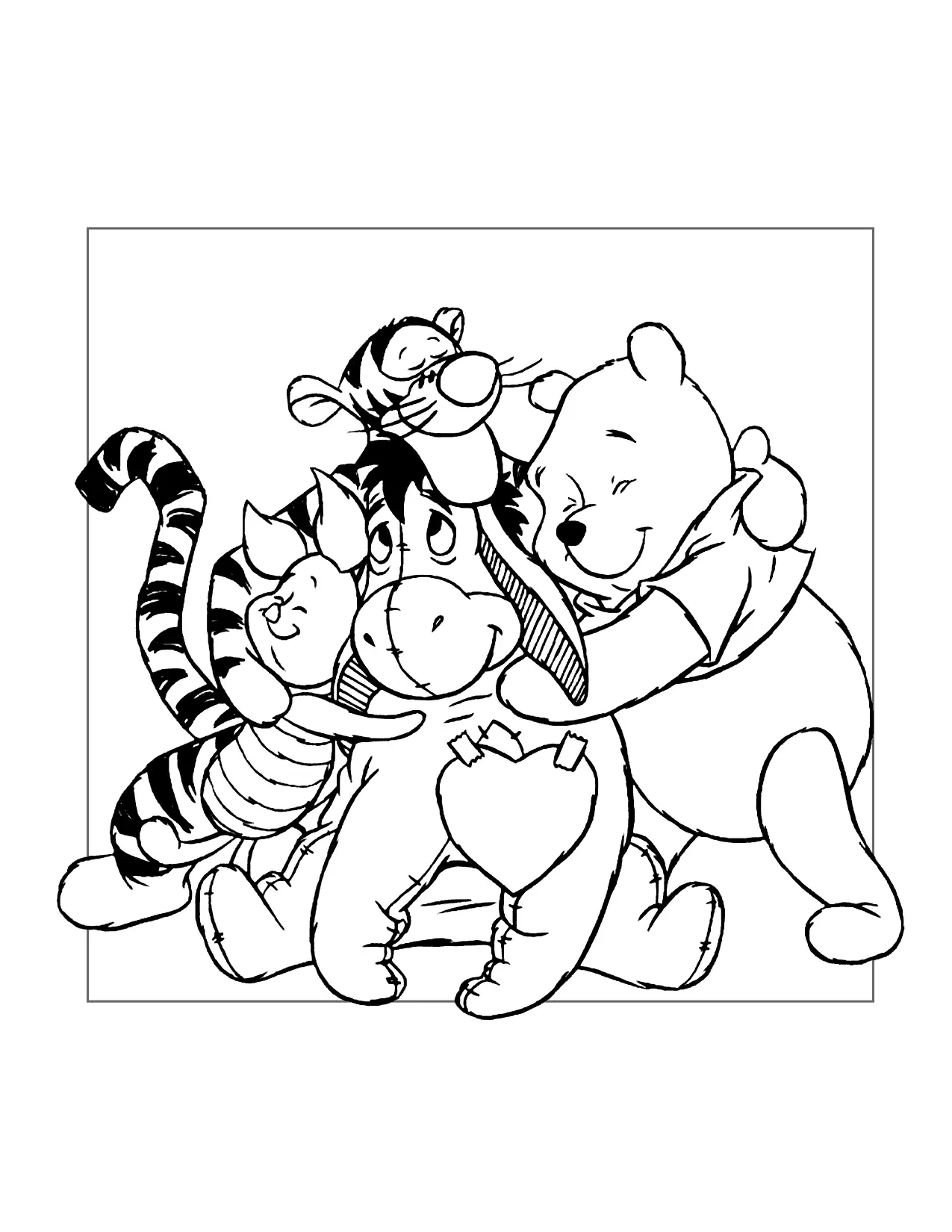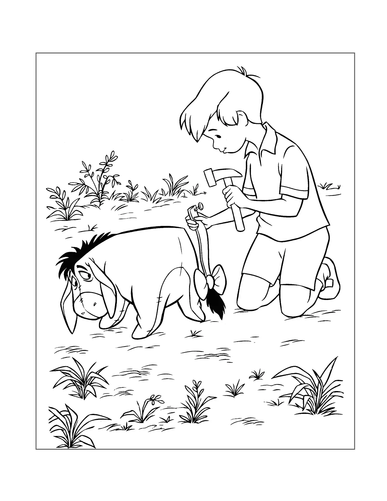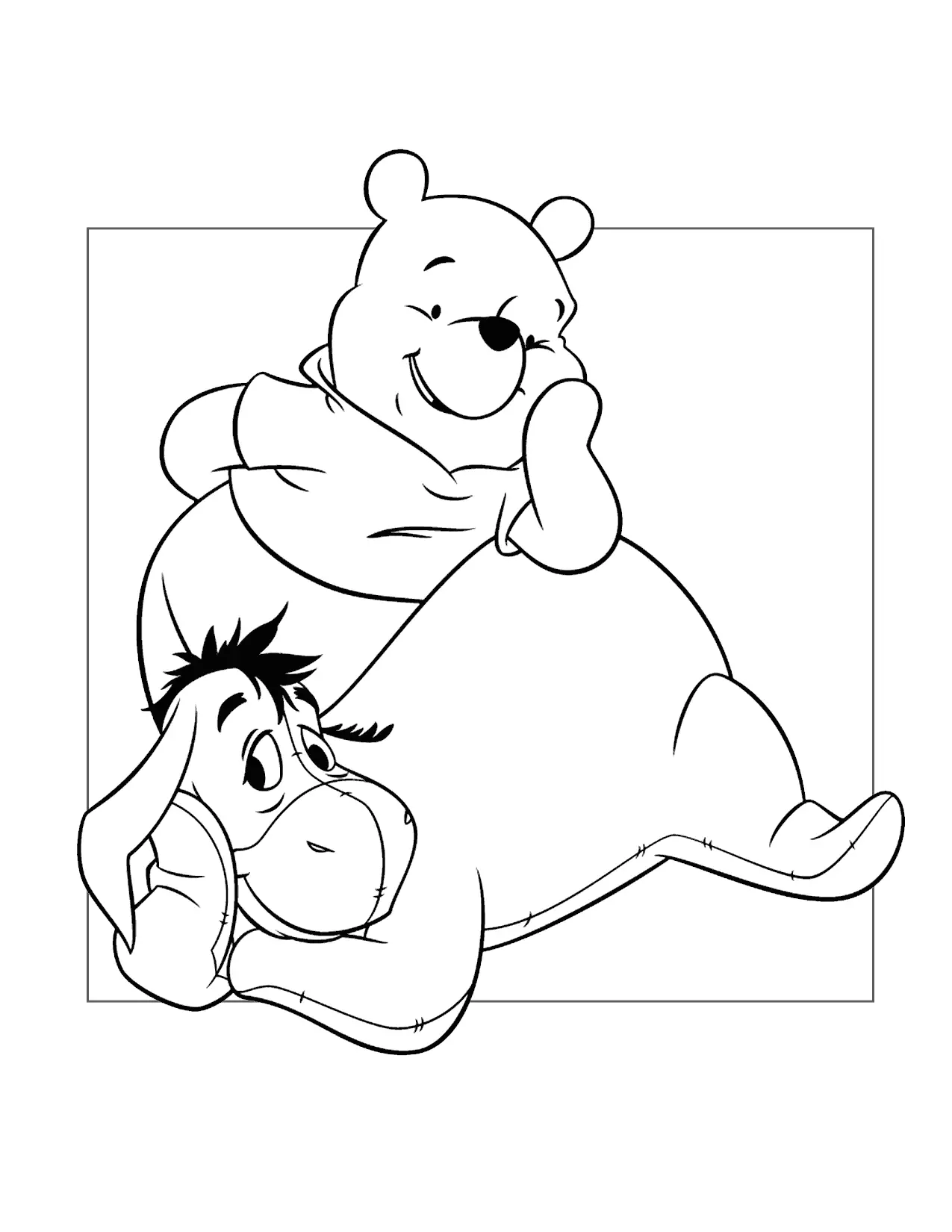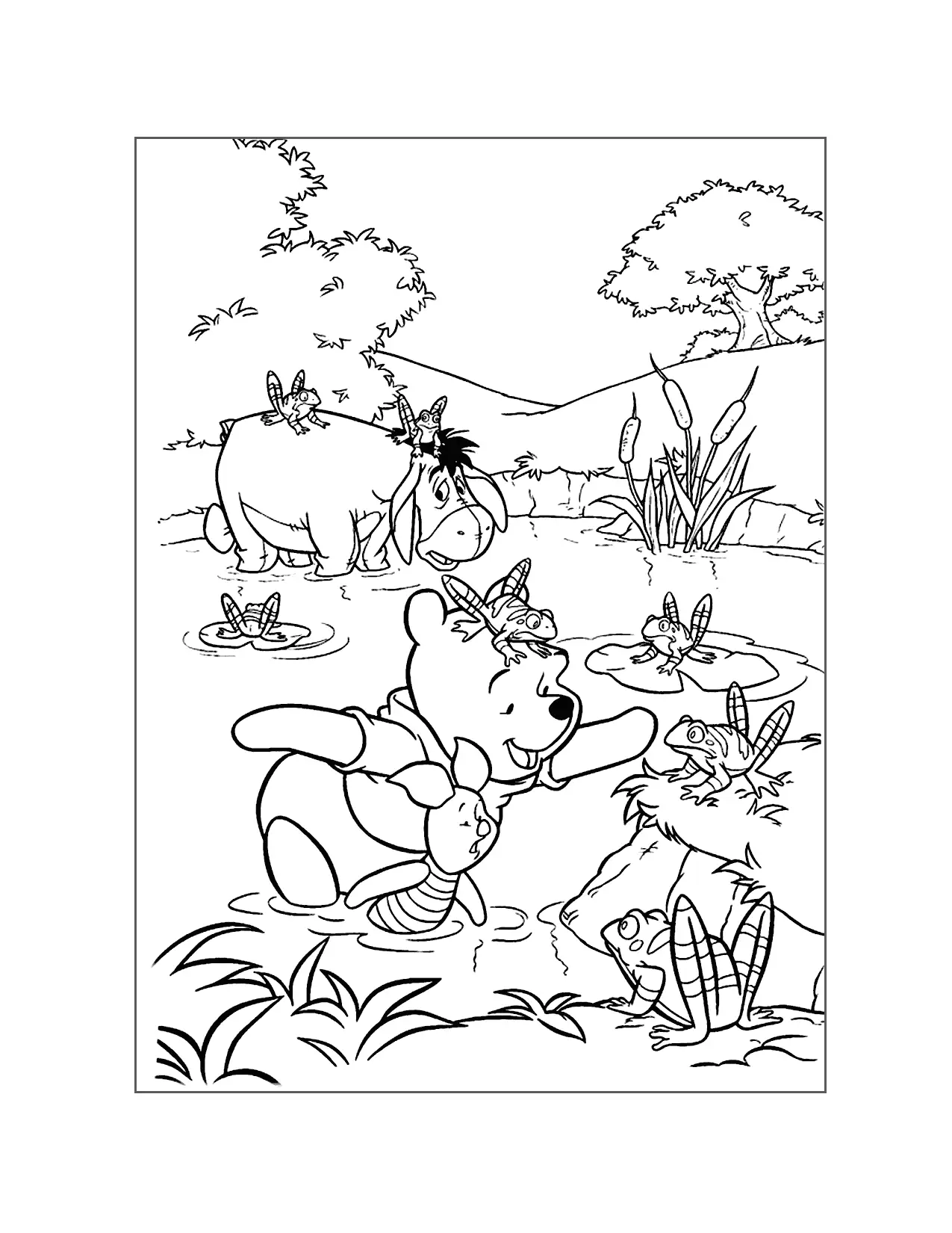 Eeyore e Pooh nella pagina da colorare di Frog Pond