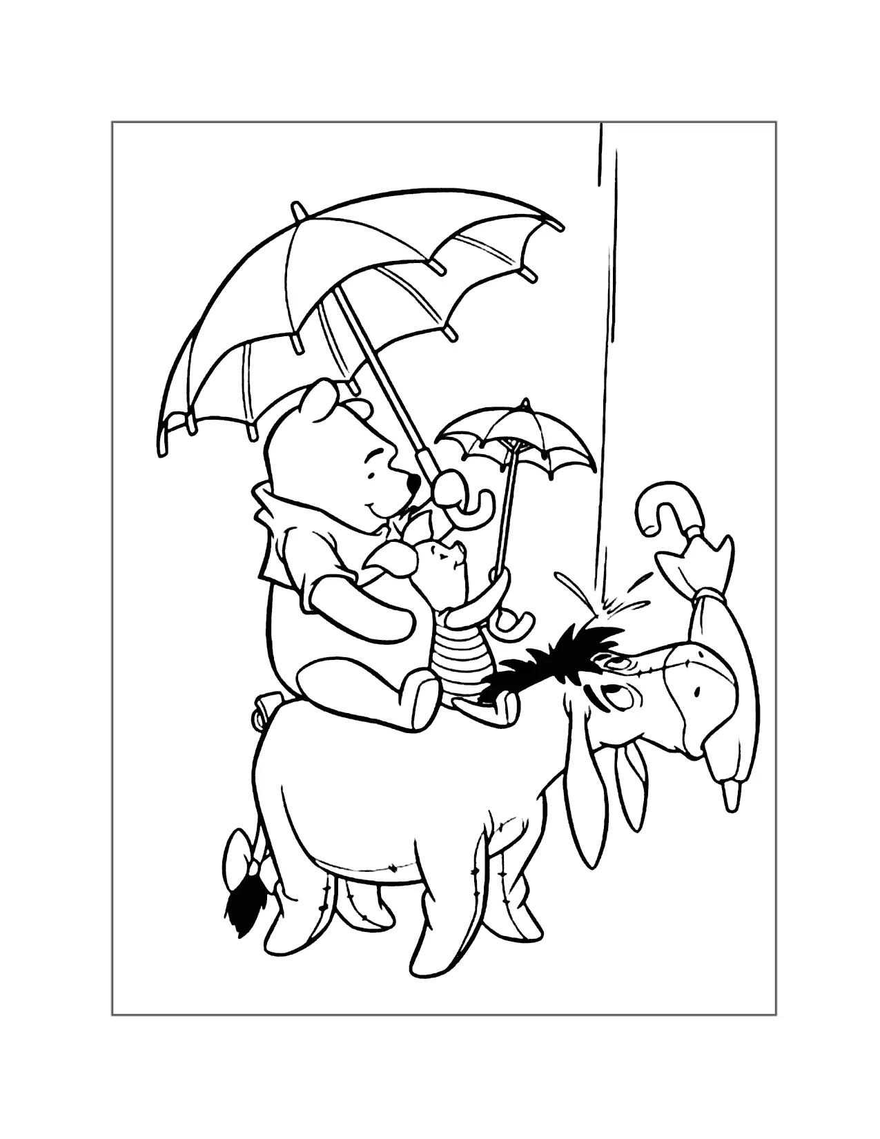 Eeyore e Pooh nella pagina da colorare di pioggia