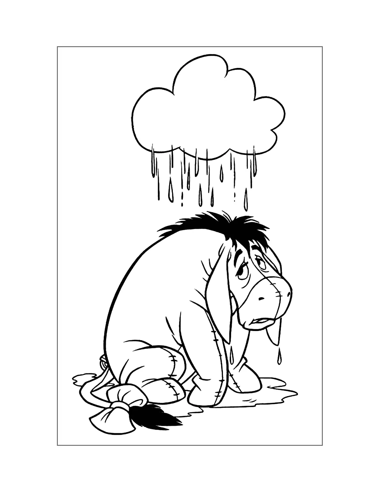 Triste eeyore sotto la pagina da colorare di Raincloud