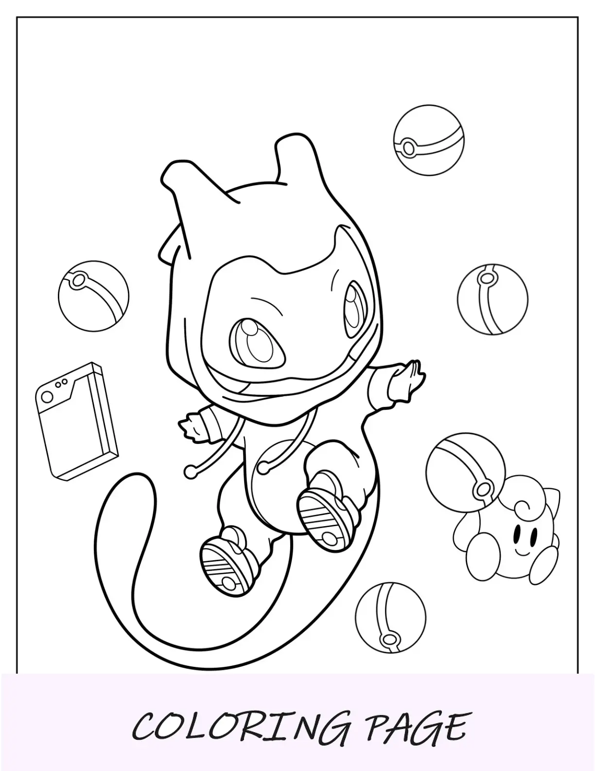 Pagina da colorare semplice Mew per bambini in età prescolare