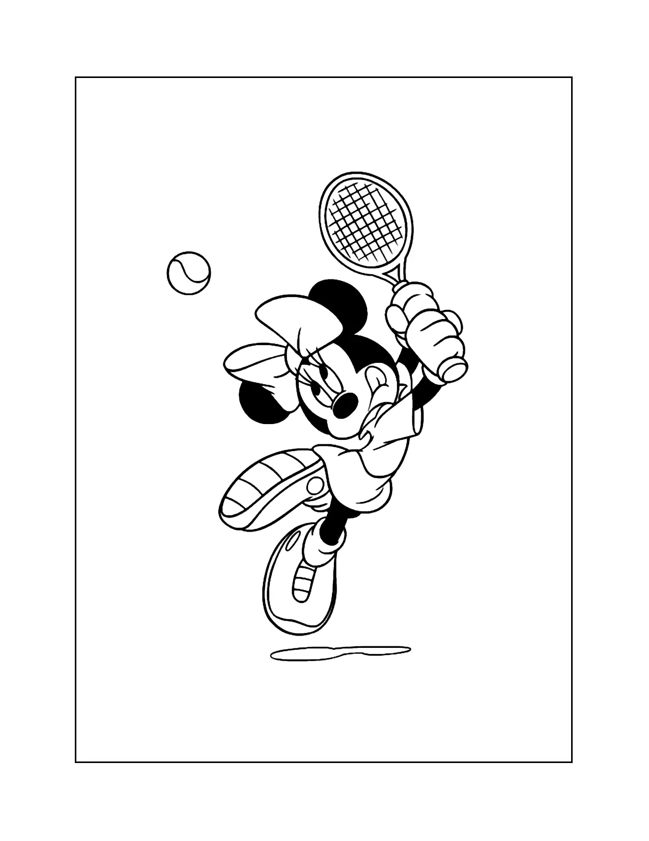 Minnie Mouse che gioca a pagine da colorare di tennis