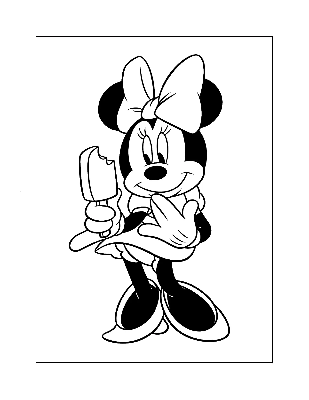 Pagina da colorare di Minnie Mouse Eating Bar Bar