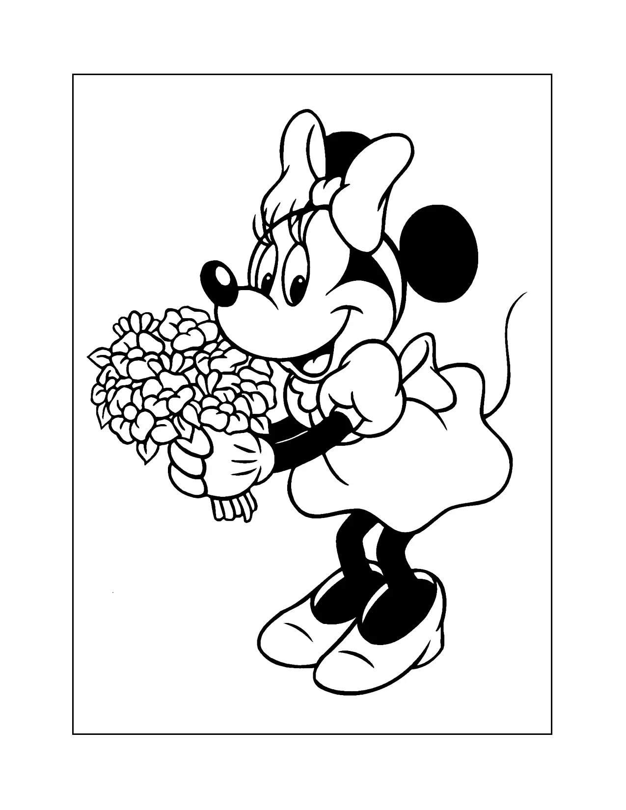 Minnie Mouse con pagina da colorare di fiori di fiori