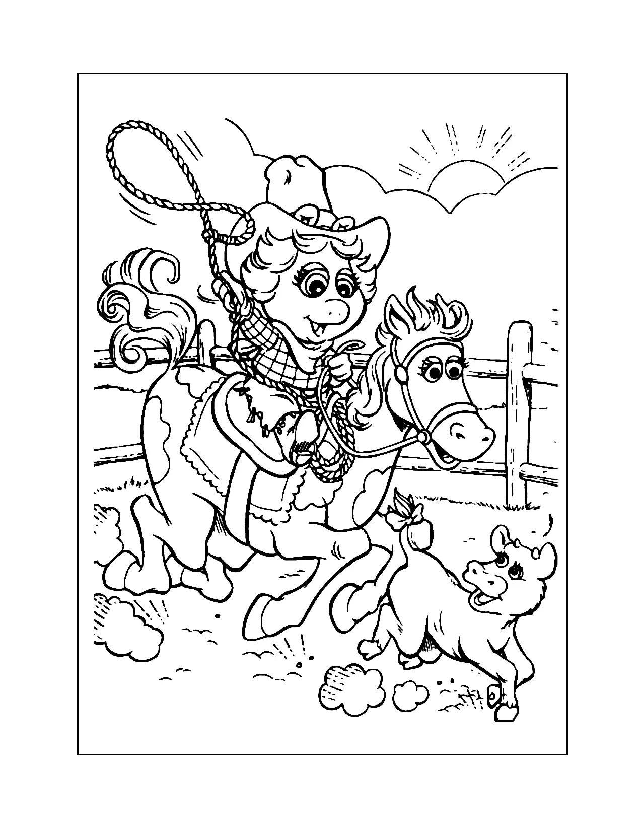 Baby Miss Piggy alla pagina da colorare del rodeo