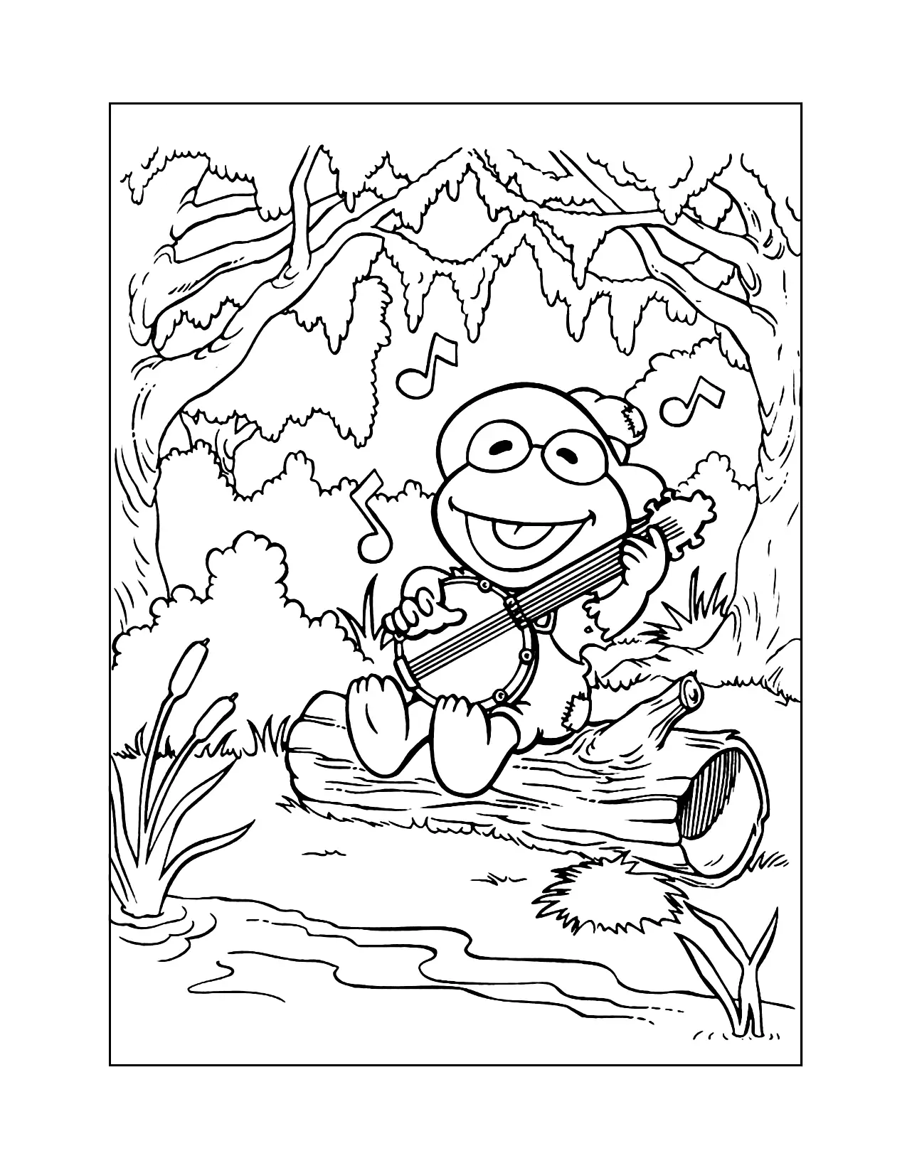 Baby Kermit che gioca alla pagina da colorare di banjo