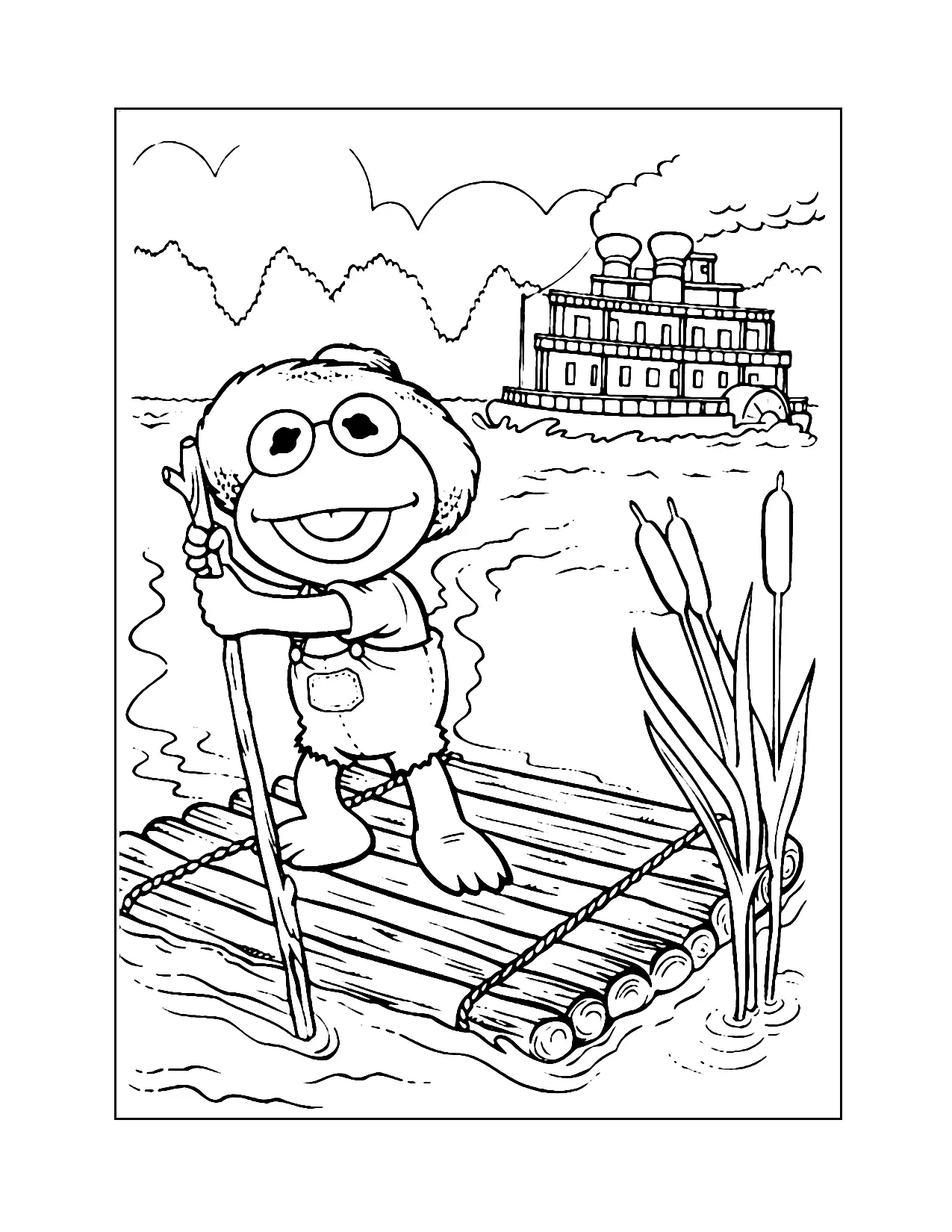 Baby Kermit su una pagina da colorare di zattera