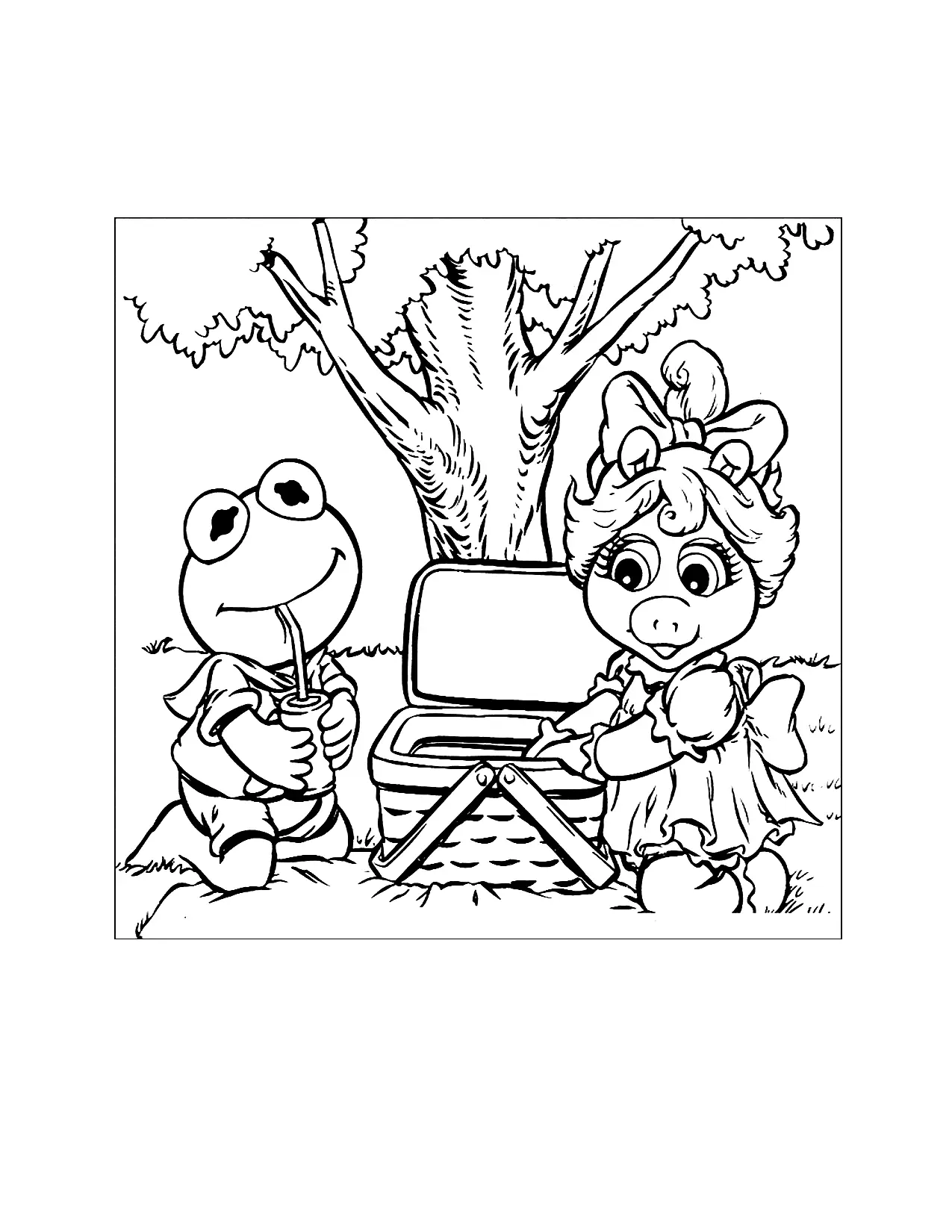 Baby Kermit e Miss Piggy che hanno una pagina da colorare picnic