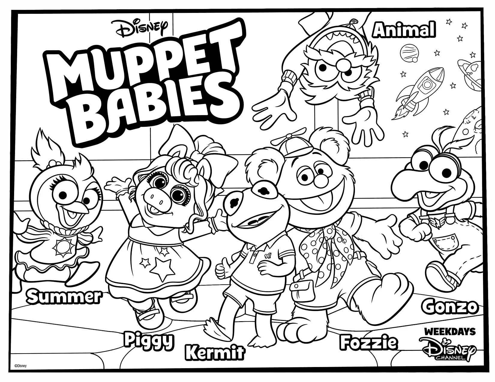 Pagina da colorare di Poster dei personaggi di Muppet Babies