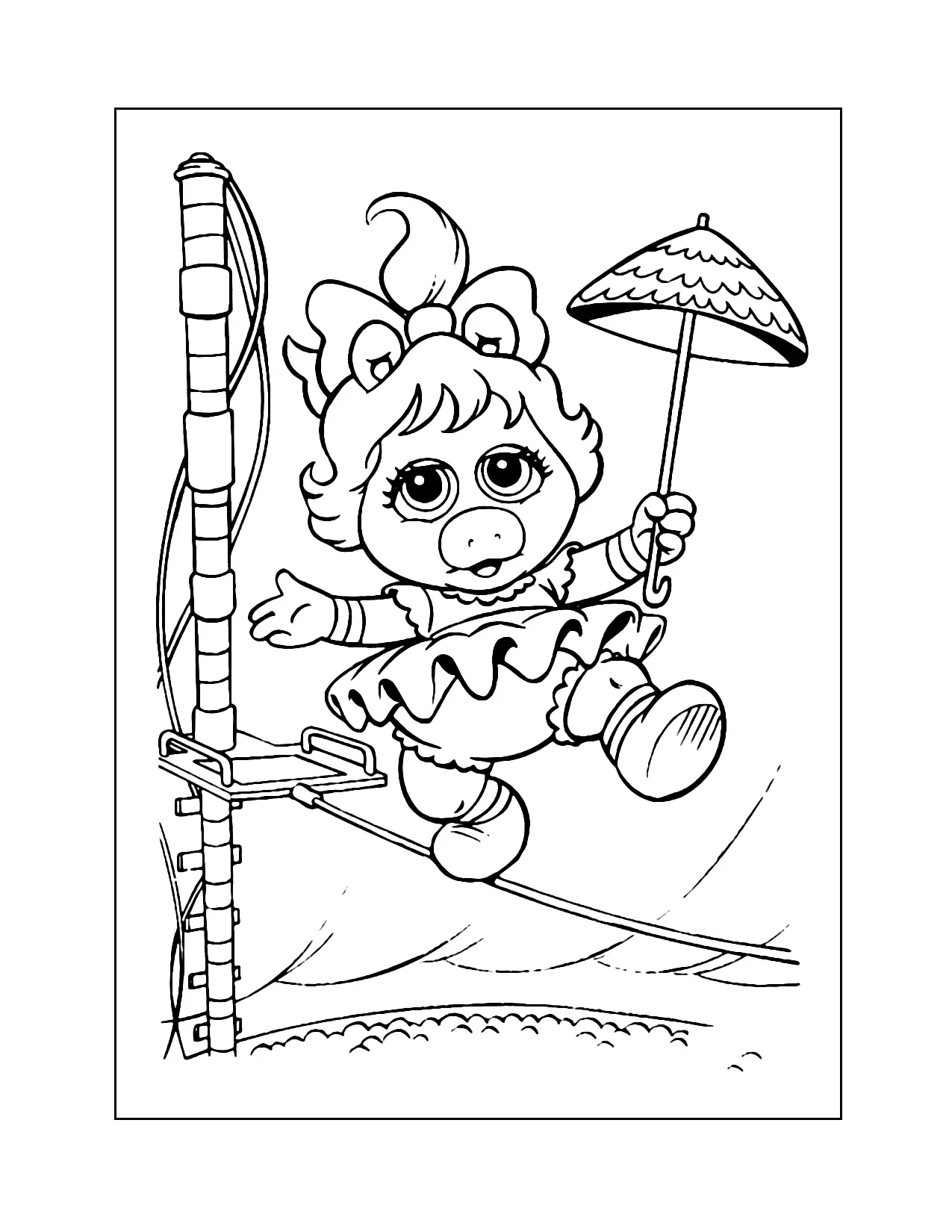 Miss Piggy Circus Tightrope Muppet Baby Coloring Page