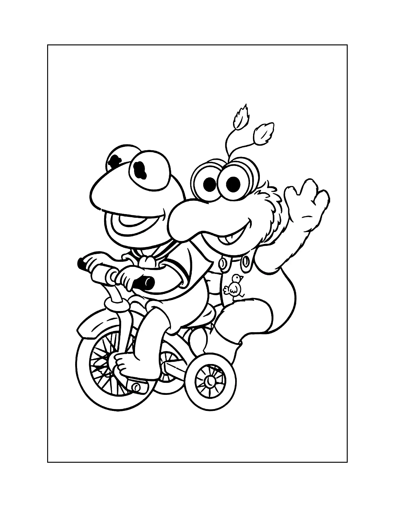 Pagina da colorare di triciclo di Kermit e Gonzo Muppet