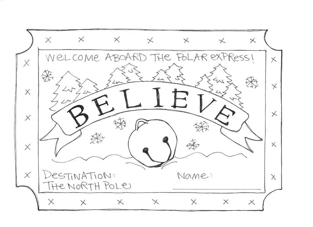 Biglietti di andata e ritorno da colorare Polar Express Pagina