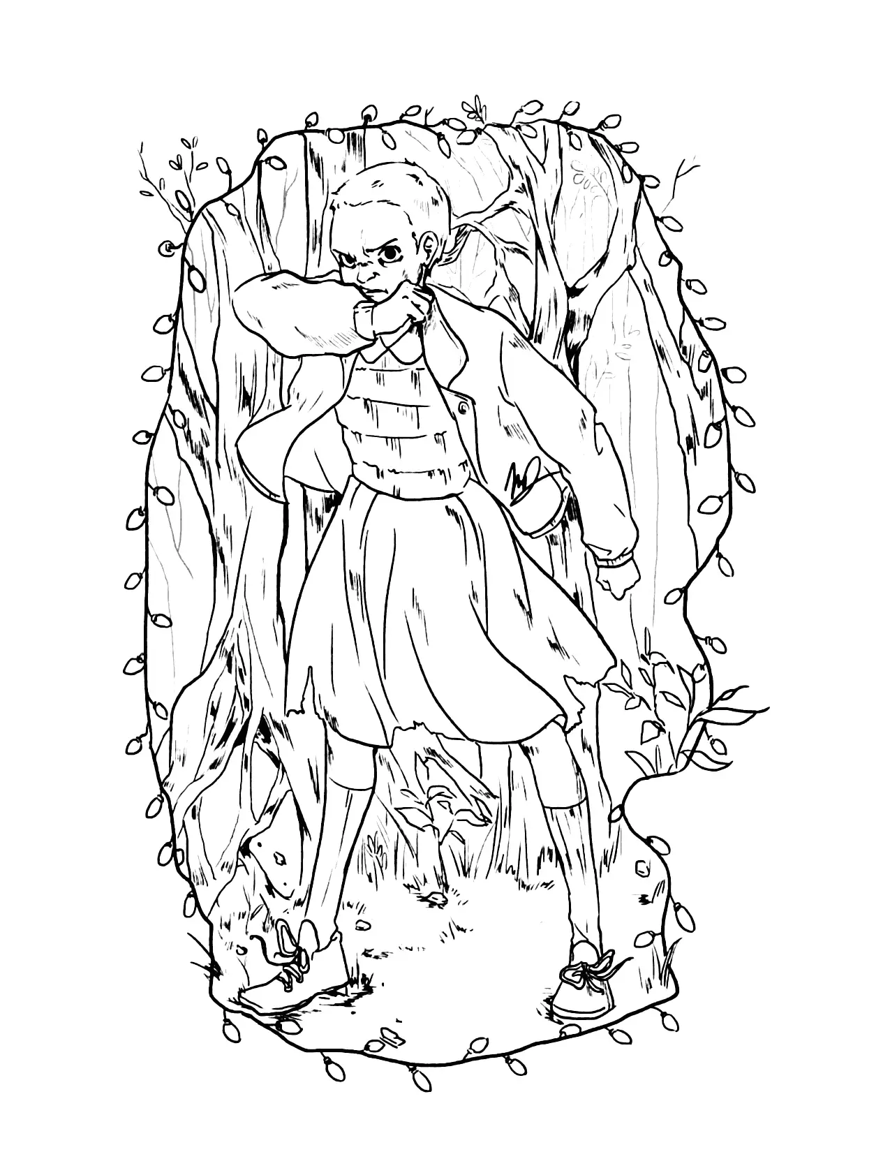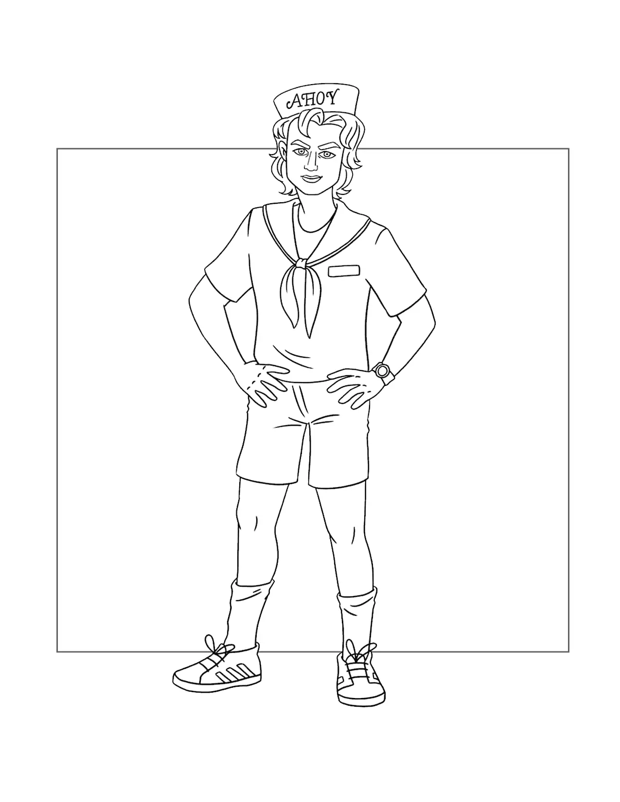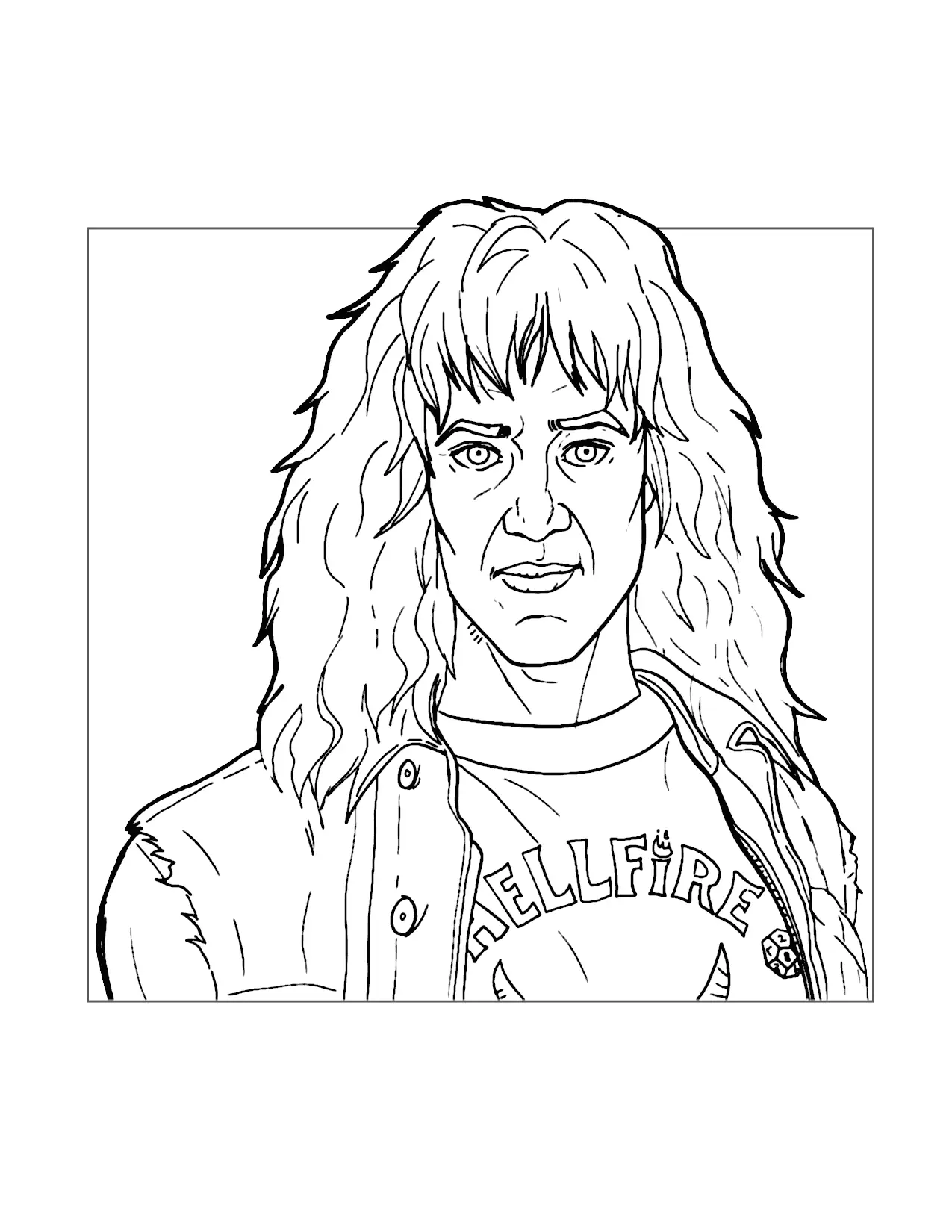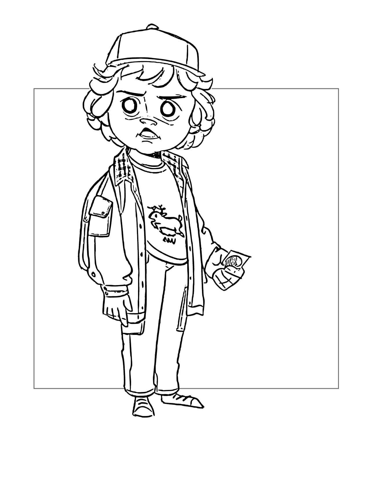 Pagina da colorare di Stranger Things El Hopper Dustin
