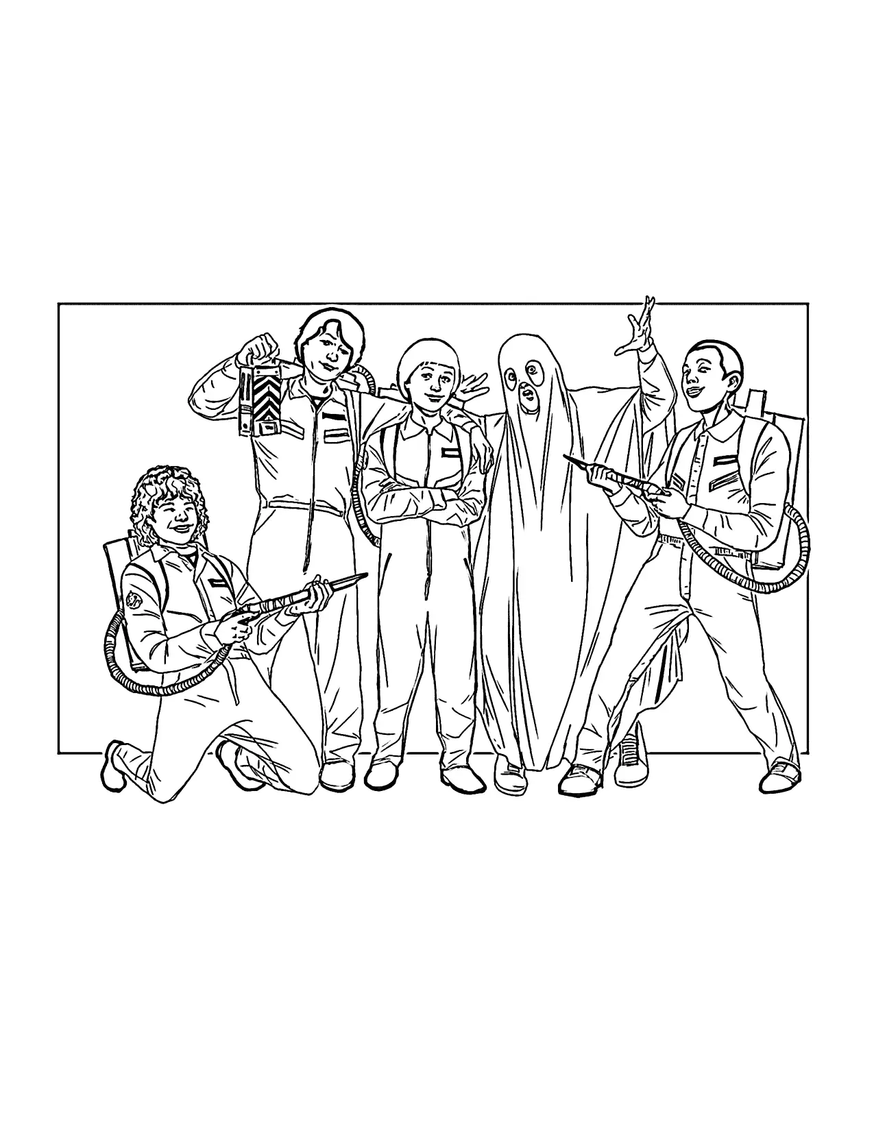 Stranger Things Ghostbusters per la pagina da colorare di Halloween